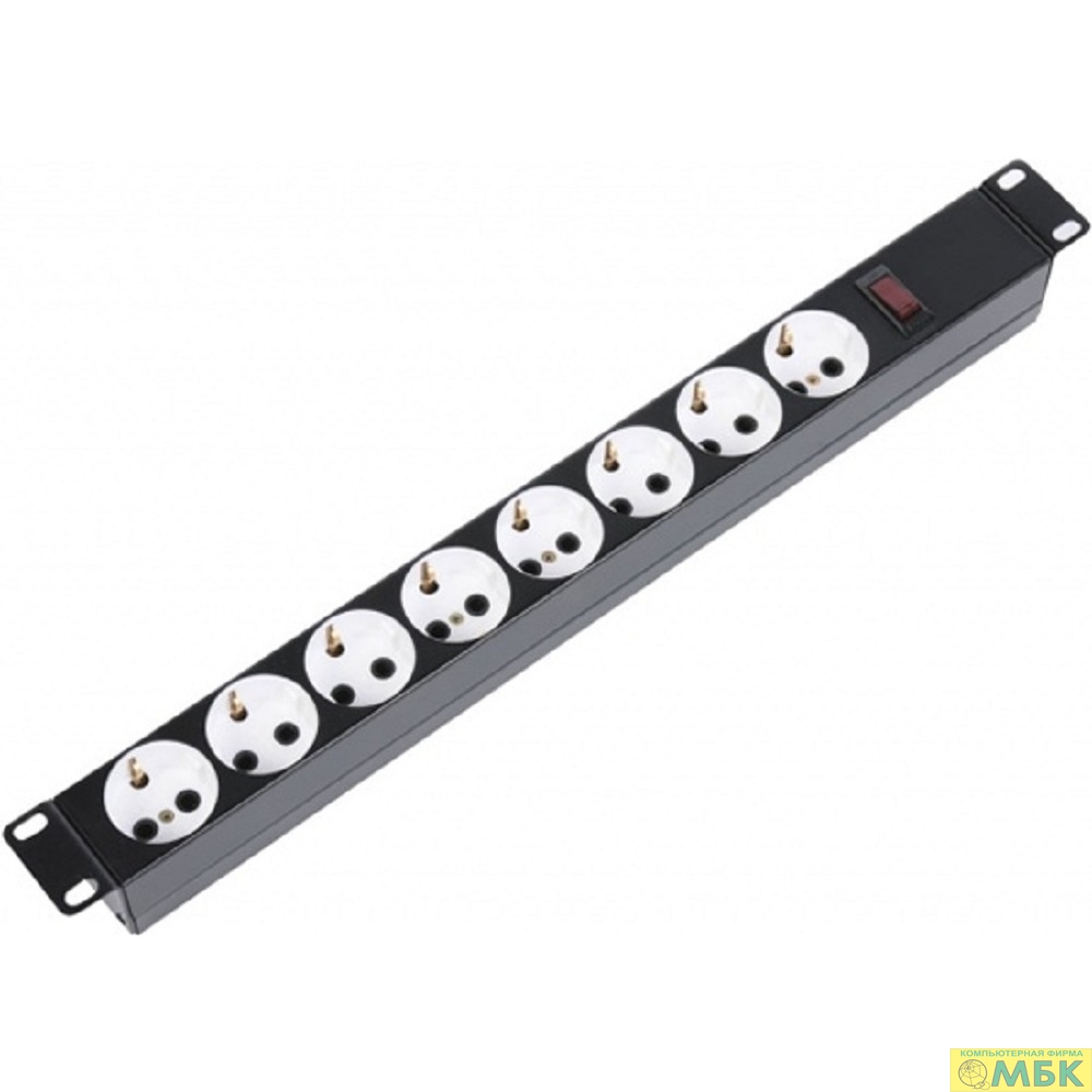 ЦМО Блок силовых розеток 10А без шнура 19" с выключателем, 8 розеток, цвет черный (БР 16-008) (БР 16-008-9005)