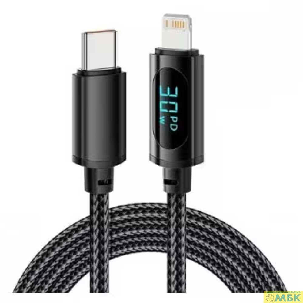 Rexant (18-7068) Кабель Type-C – Lightning для Apple, 3А, 1м, в черной нейлоновойоплетке, с LED дисплеем
