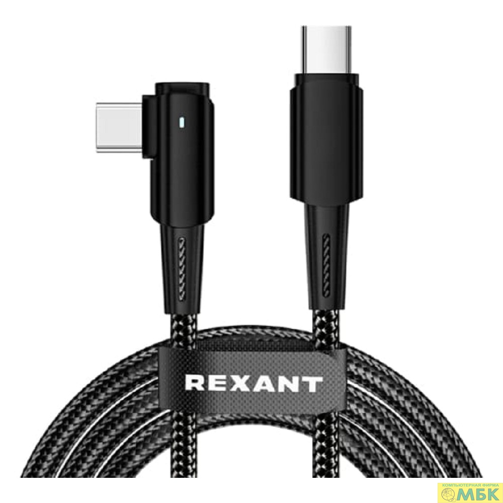 Rexant (18-7070) Кабель Type-C – Type-C, 5А, 100Вт, 1м, в черной нейлоновой оплетке, с угловым штекером и световой индикацией