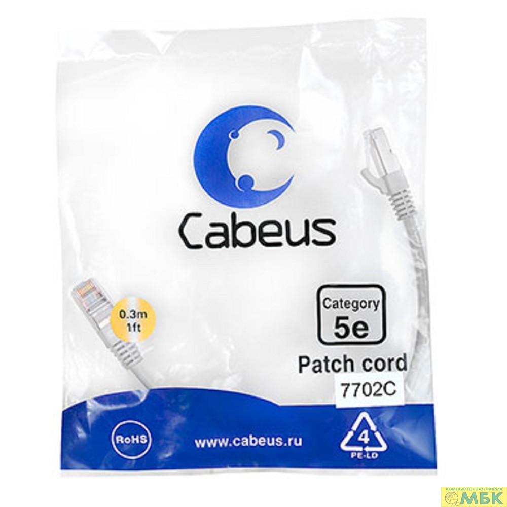 Cabeus PC-UTP-RJ45-Cat.5e-1m Патч-корд U/UTP, категория 5е, 2xRJ45/8p8c, неэкранированный, серый, PVC, 1м