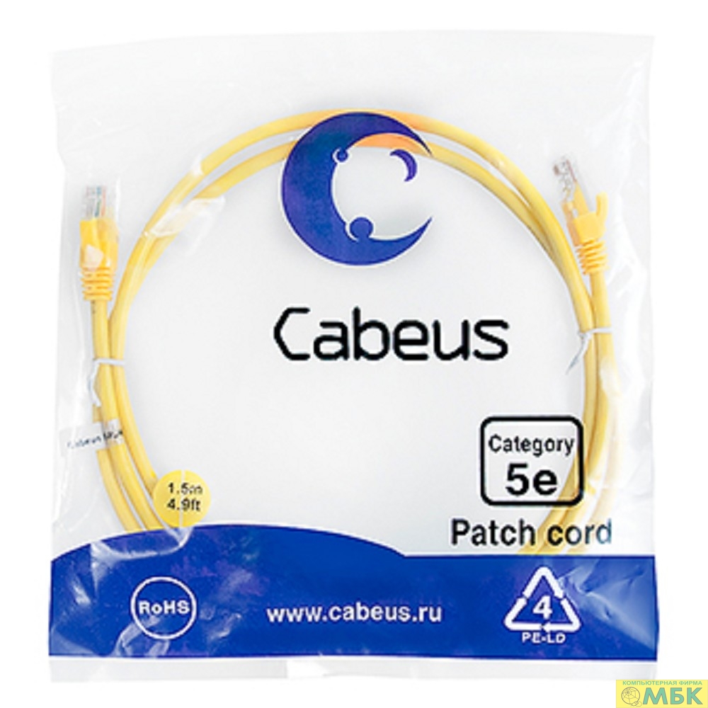 Cabeus PC-UTP-RJ45-Cat.5e-1.5m-YL-LSZH Патч-корд U/UTP, категория 5е, 2xRJ45/8p8c, неэкранированный, желтый, LSZH, 1.5м