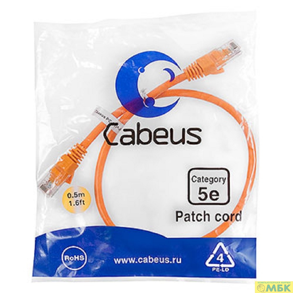 Cabeus PC-UTP-RJ45-Cat.5e-0.5m-OR Патч-корд U/UTP, категория 5е, 2xRJ45/8p8c, неэкранированный, оранжевый, PVC, 0.5м