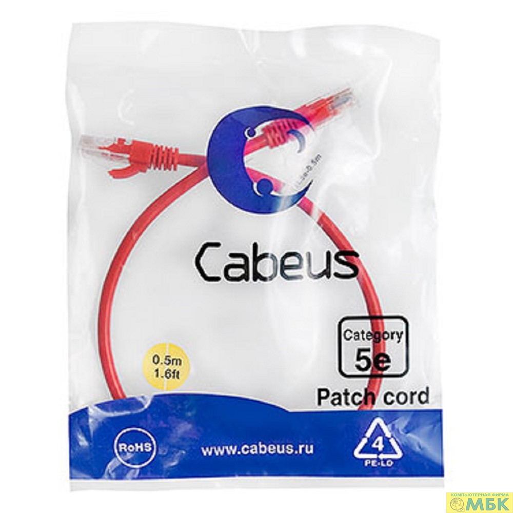 Cabeus PC-UTP-RJ45-Cat.5e-0.5m-RD Патч-корд U/UTP, категория 5е, 2xRJ45/8p8c, неэкранированный, красный, PVC, 0.5м