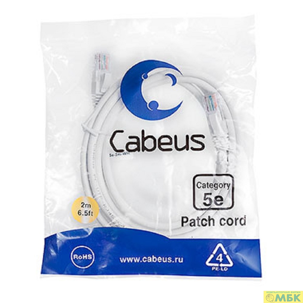 Cabeus PC-UTP-RJ45-Cat.5e-2m-WH-LSZH Патч-корд UTP, категория 5e, 2 м, LSZH, неэкранированный