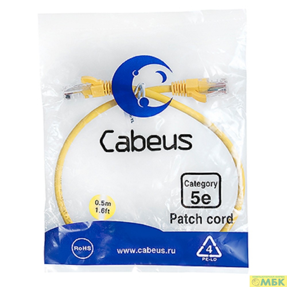 Cabeus PC-UTP-RJ45-Cat.5e-0.5m-YL Патч-корд U/UTP, категория 5е, 2xRJ45/8p8c, неэкранированный, желтый, PVC, 0.5м