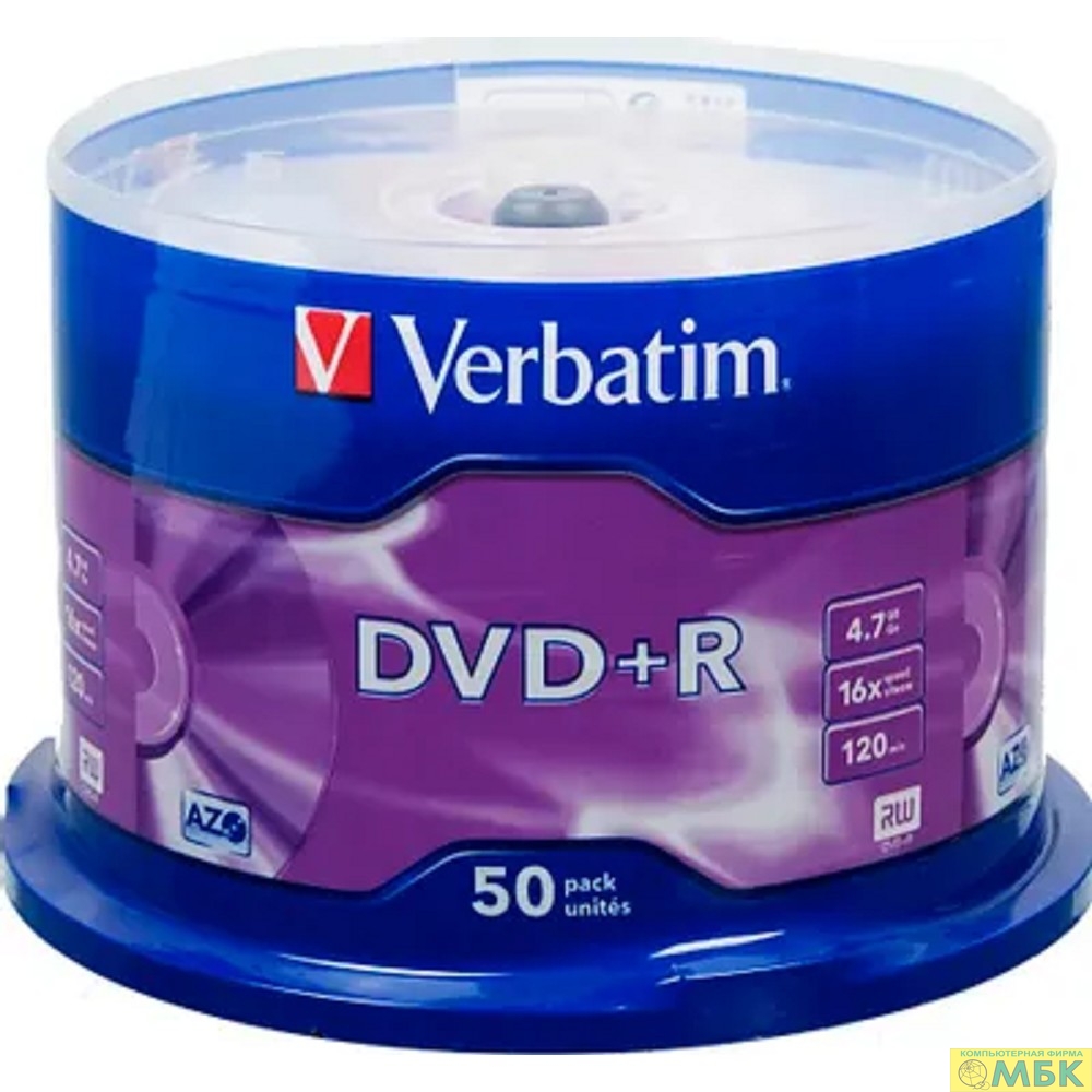 Verbatim Диски DVD+R 4.7Gb 16-х , 50 шт, Cake Box (43550)