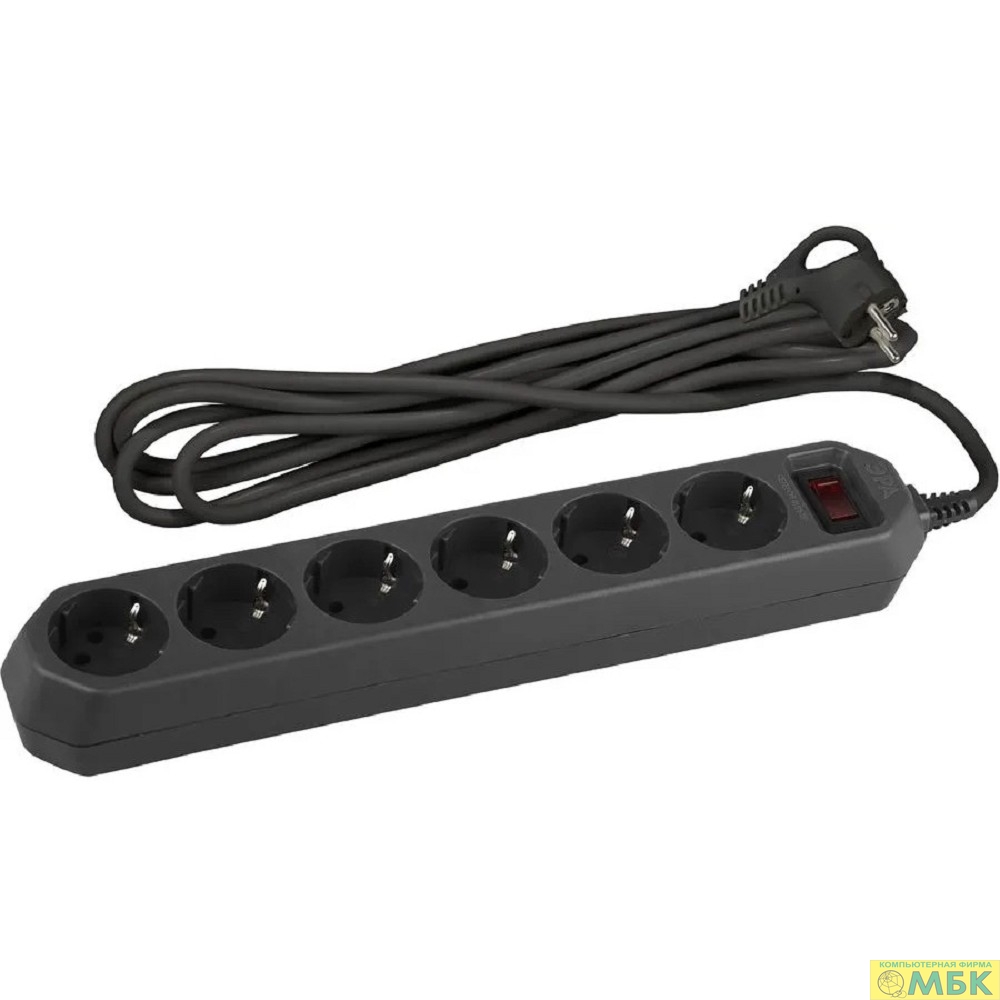 Эра Б0037265 Сетевой фильтр USF-6es-5m-B с базовой защитой с заземлением с выключателем 6 розеток 5м 10А черный