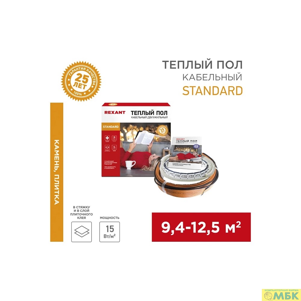 Rexant 51-0519-3 Теплый пол RND-100-1500 (1500Вт/100м/ S обогрева, м2: 9,4-12,5) (двух жильный)