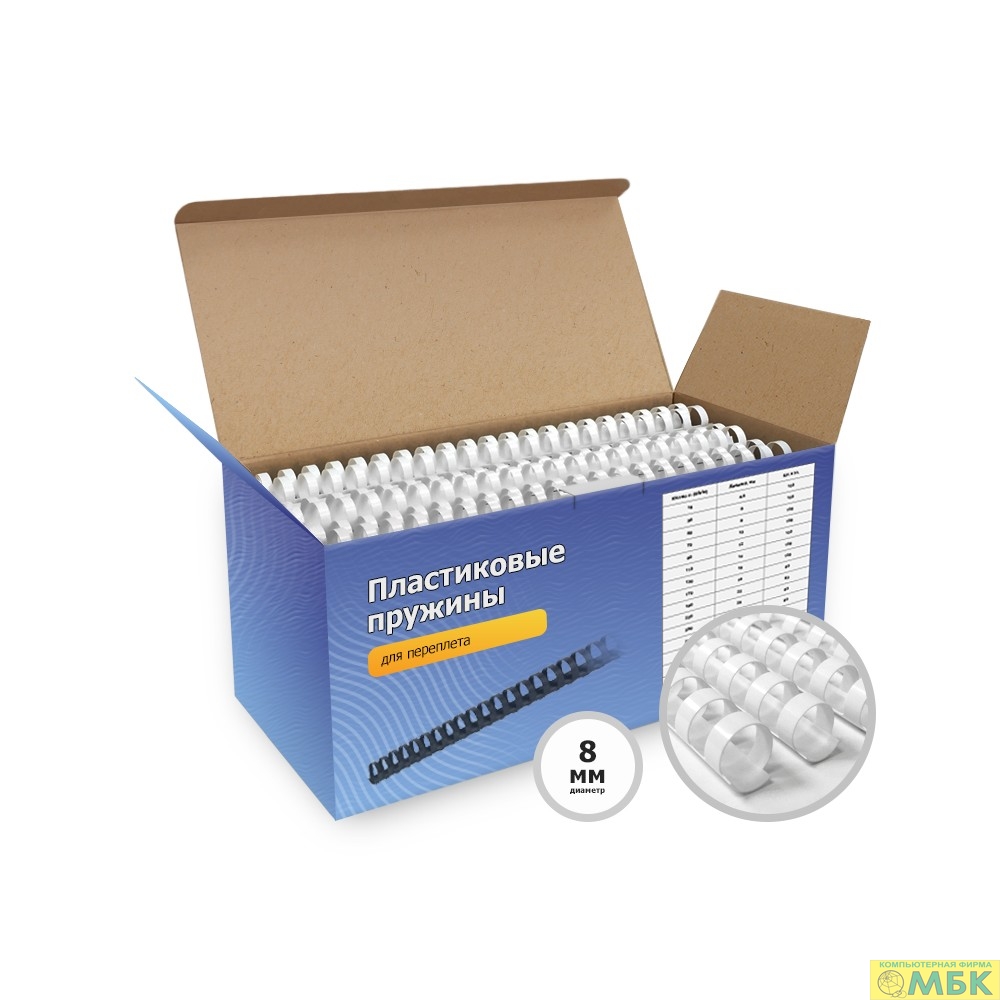 ГЕЛЕОС Пластиковые пружины BCA4-8W 8 мм белые 100 шт.