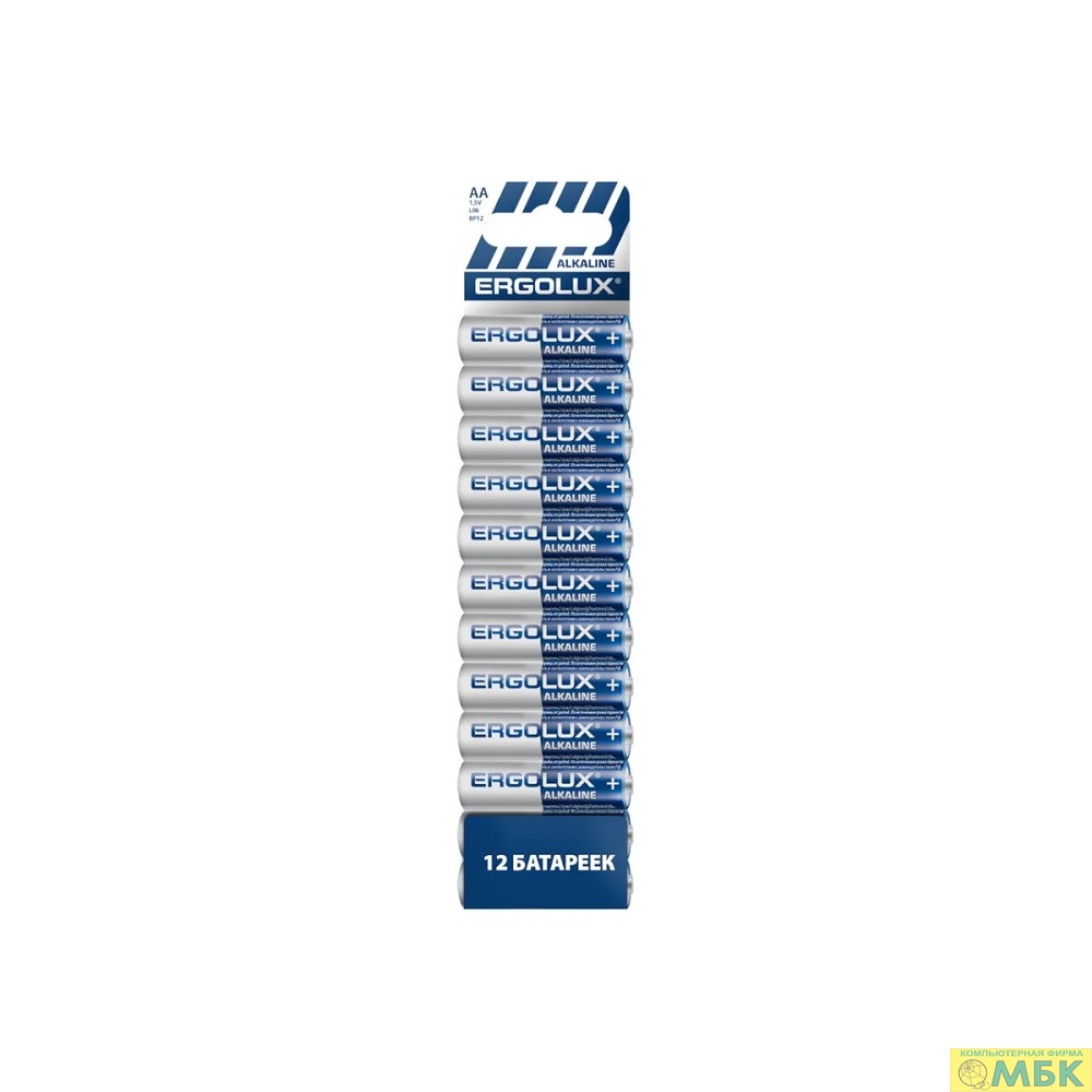 Ergolux Alkaline BP12 LR6 (ПРОМО, LR6 BP12, пальчиковая батарейка АА 1.5В)(12 шт. в уп-ке)