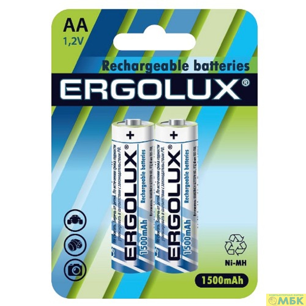 Ergolux AA-1500mAh Ni-Mh BL-2 (NHAA1500BL2, аккумулятор,1.2В) (2 шт. в уп-ке)