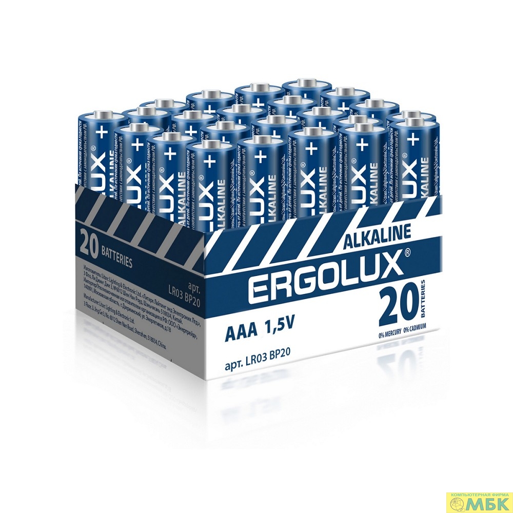 Ergolux.. LR03 Alkaline BP20 ( LR03 BP20, батарейка,1.5В)(20 шт. в уп-ке)