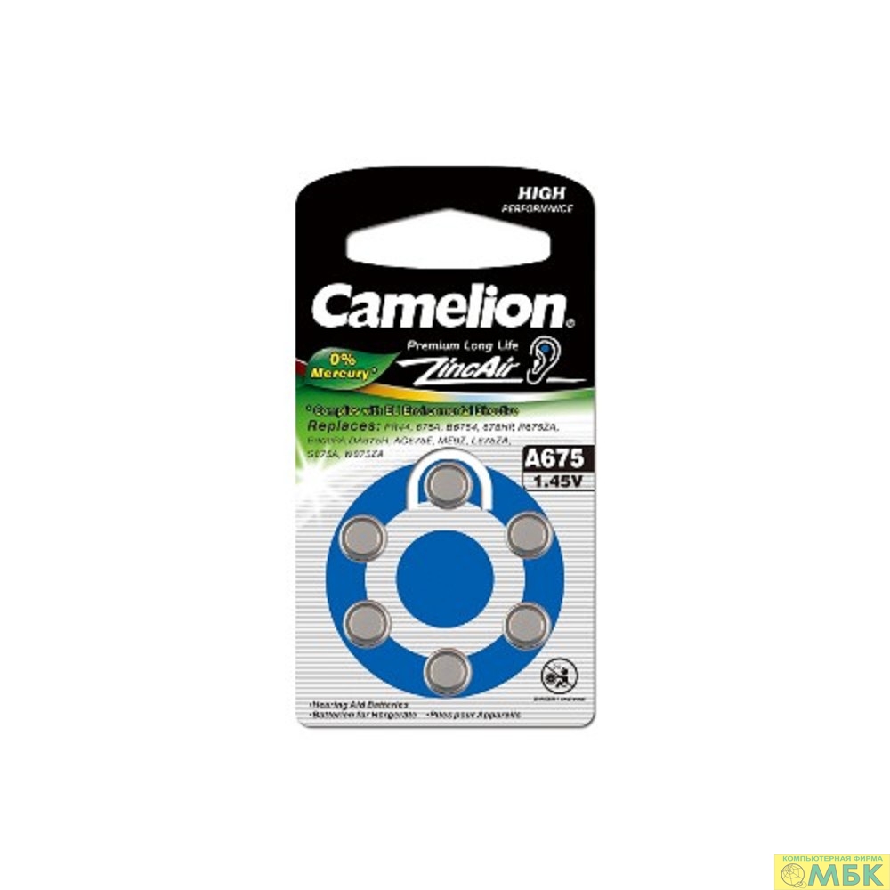 Camelion ZA675 BL-6 Mercury Free (A675-BP6(0%Hg), батарейка для слуховых аппаратов, 1.4 V,620mAh) (6 шт. в уп-ке)