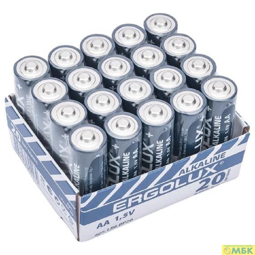 Ergolux Alkaline LR6 BP-20 (ПРОМО, LR6 BP20PR, пальчиковая батарейка 1.5В) (20 шт. в уп-ке)