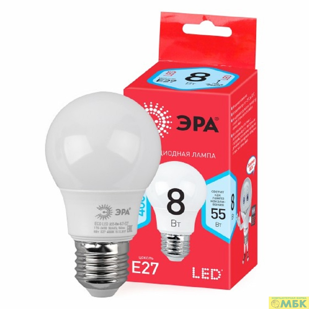 ЭРА Б0052382 Лампочка светодиодная RED LINE LED A55-8W-840-E27 R Е27 / E27 8Вт груша нейтральный белый свет