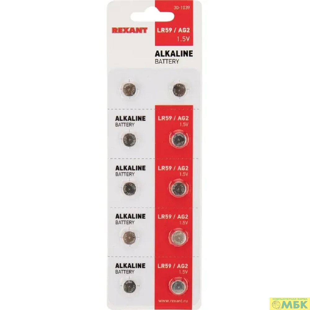 Rexant (30-1039) Батарейка часовая LR59, 1,5В, 10 шт (AG2, LR726, G2, 196, GP96A, 396, SR726W) блистер