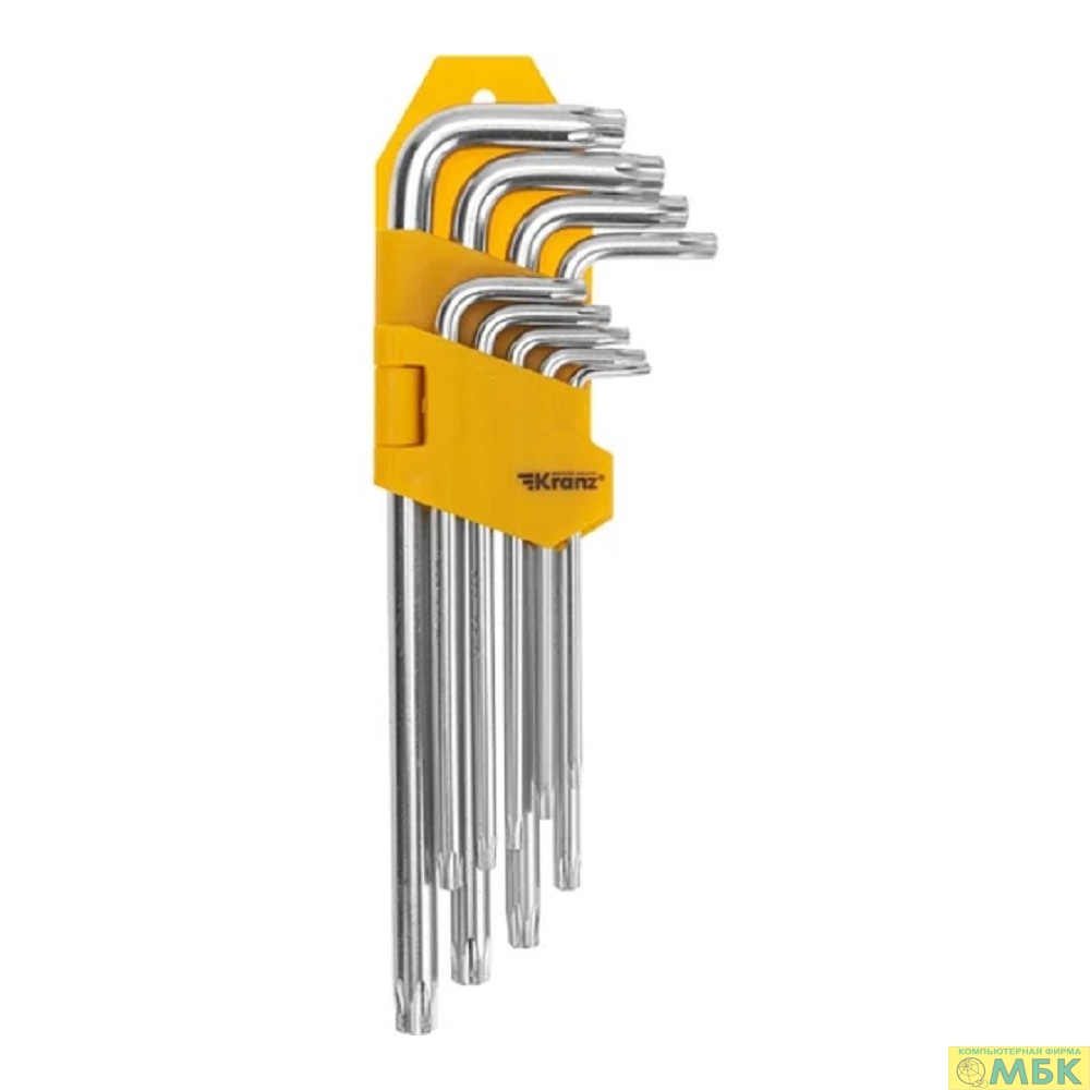Kranz (KR-12-5221) Набор ключей имбусовых Tamper-Torx 9 шт., ТТ10-ТТ50, закаленные, удлиненные, никель