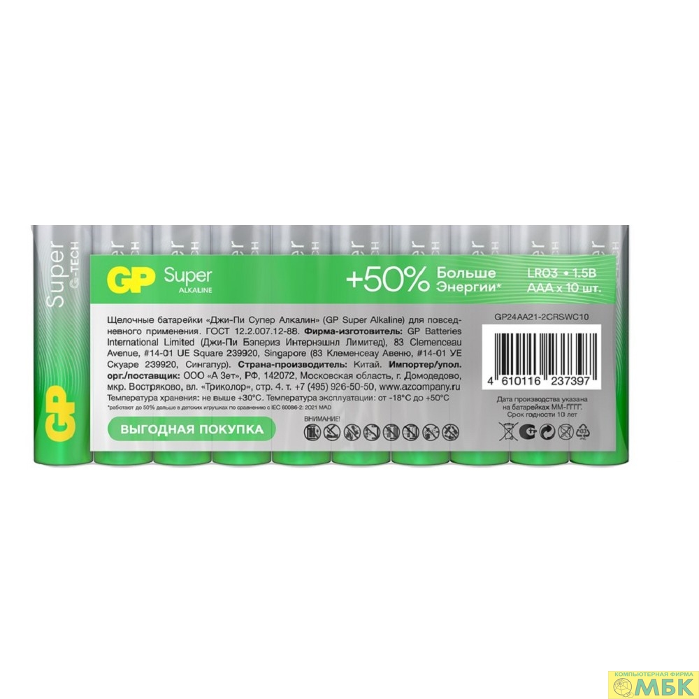 GP 24A-B10 LR03 Super Alkaline G-Tech (24AA21-2CRSWC10) (10 шт в уп-ке)