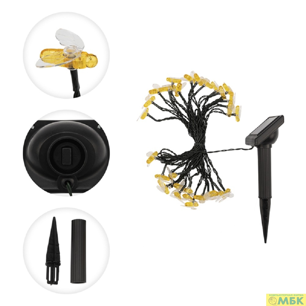 Rexant (602-252) Гирлянда садовая (каскад) Янтарные Пчелы 5,8м, 2700К с аккумулятором и выносной солнечной панелью Lamper