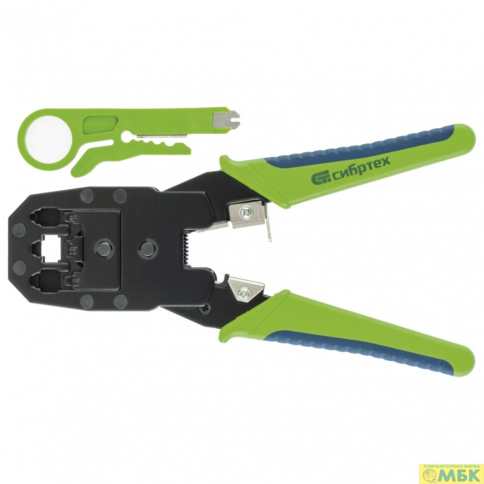 СИБРТЕХ Клещи для обжима телефонных и компьютерных клемм 4P, 6P, 8P, функция обрезания проводов [17733]