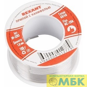 REXANT (09-3223) Припой с канифолью 100 гр. d=2.0 мм (Sn60 Pb40 Flux 2.2%)