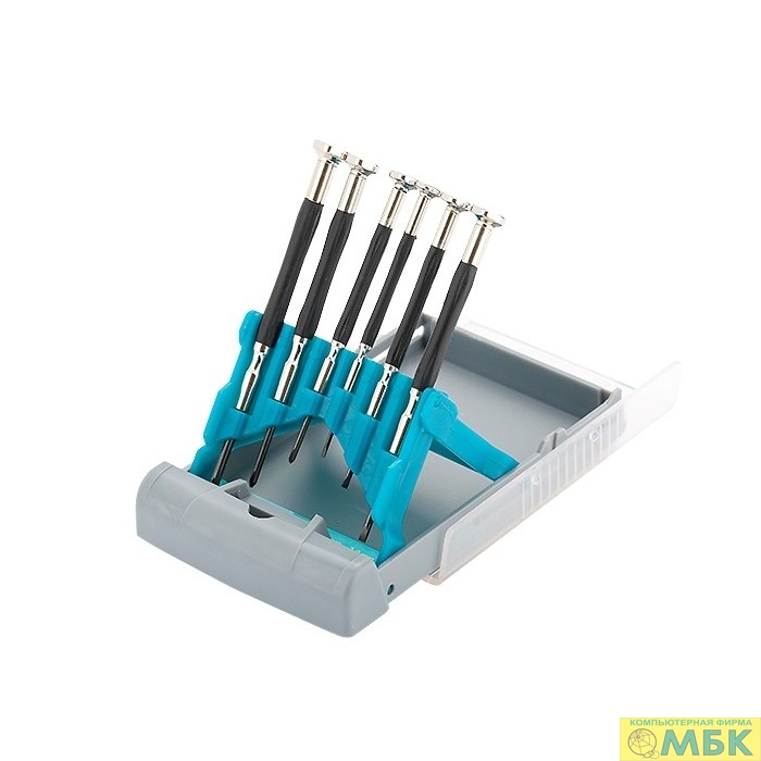 GROSS Набор отверток для точной механики, CrMo, метал. обрезин. рукоятки, 6шт., бокс - трансформер [13346]