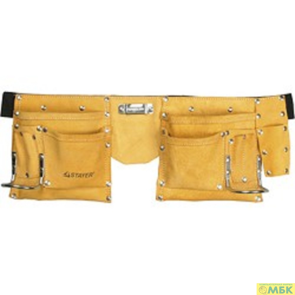 STAYER "MASTER" Пояс для инструментов, кожаный, 10 карманов, 2 скобы [38510]