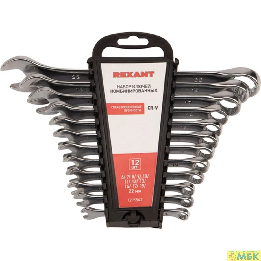 Rexant (12-5842) Набор ключей комбинированных (6-14, 17, 19, 22мм) 12 шт, CrV, зеркальное хромирование