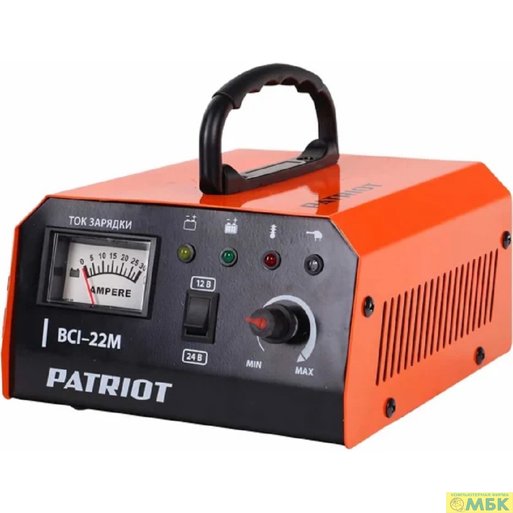 Зарядное устройство PATRIOT BCI-22M [650303425] {Вход.напр. 1ф - 220В ±15%; потреб.мощ 0,7/0,99 кВА; напряжен.зарядки 12/24В; ток зарядки макс. 20/15А; емк.бат. 10-400/10-270 А/ч; вес 1,4 кг.}