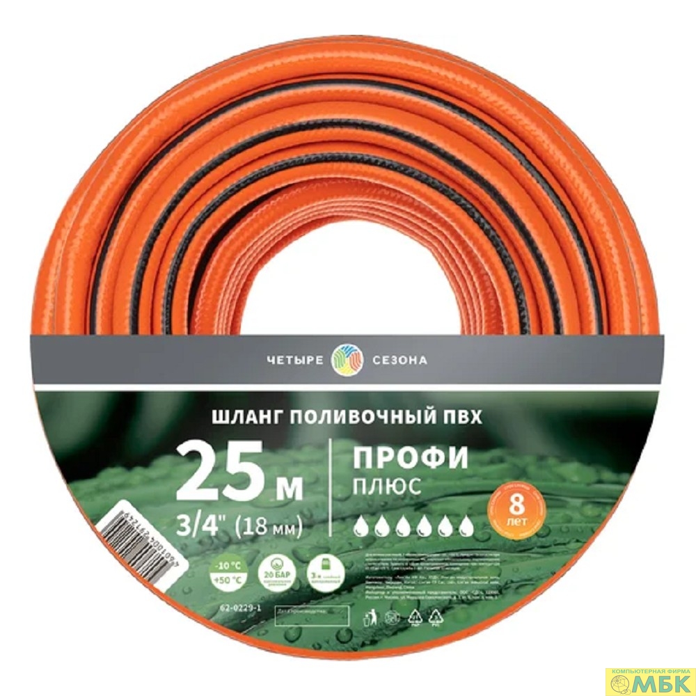 Rexant (62-0230) Шланг поливочный ПВХ 3-х слойный армированный 3/4" 50м Профи Четыре Сезона
