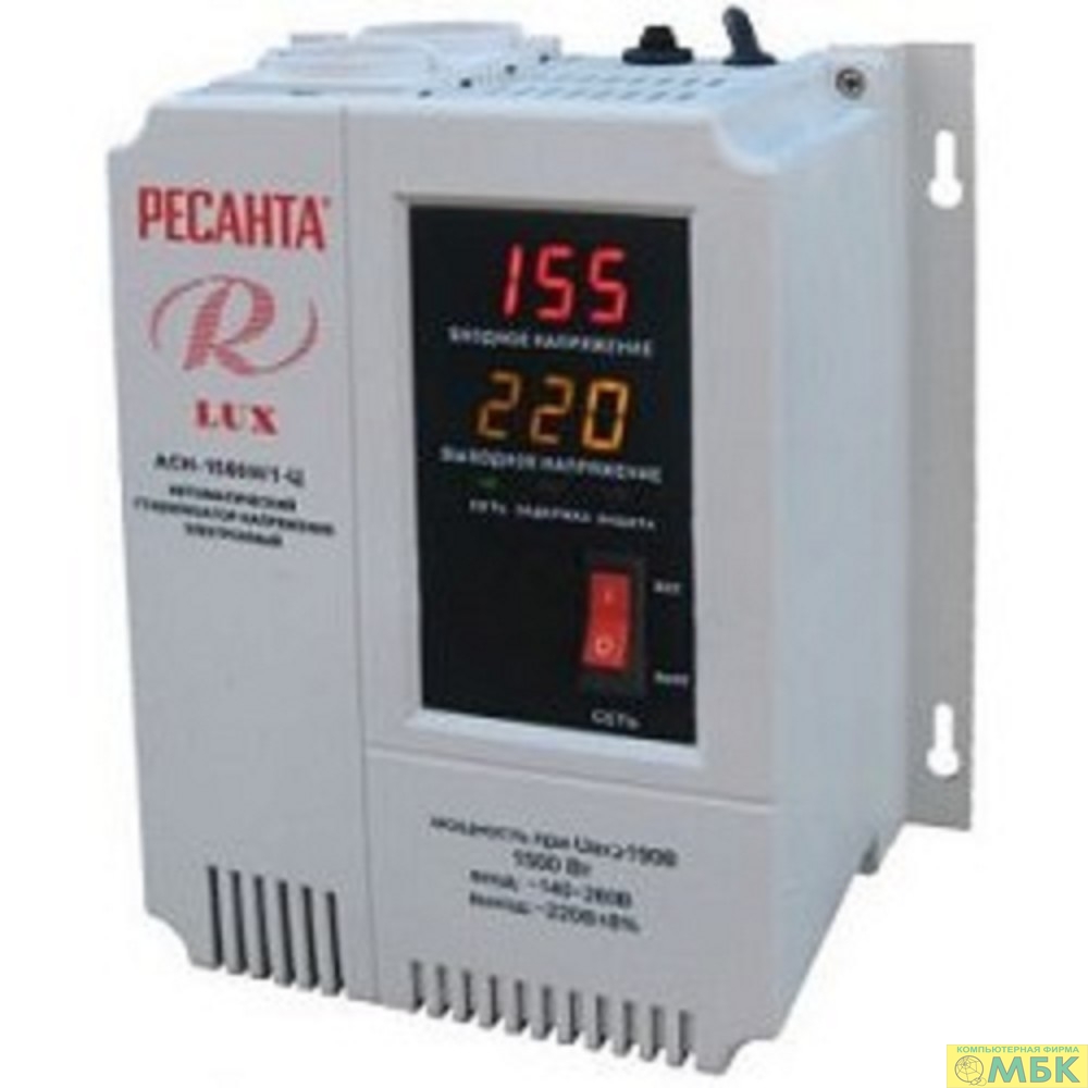 Ресанта АСН-1 500 Н/1-Ц 63/6/20 Стабилизатор Lux {220В±8%, Габариты 206х133х230, Вес 4,5кг}
