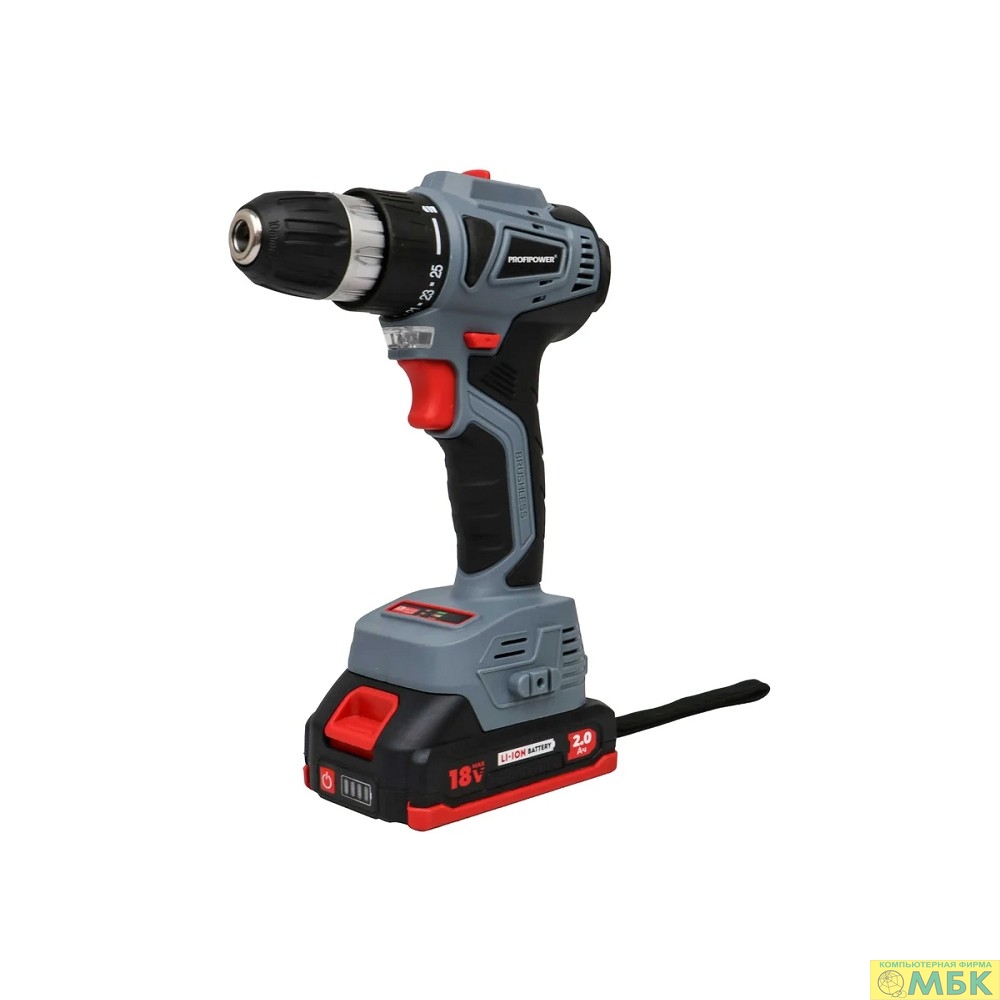 Аккумуляторный бесщеточный шуруповерт PROFIPOWER MKBL-18BT (18В,Li-ion-2шт, 2.0Ач, 0,8-10мм,40нм,магнитная бита, З/У, в кейсе) [E0146]