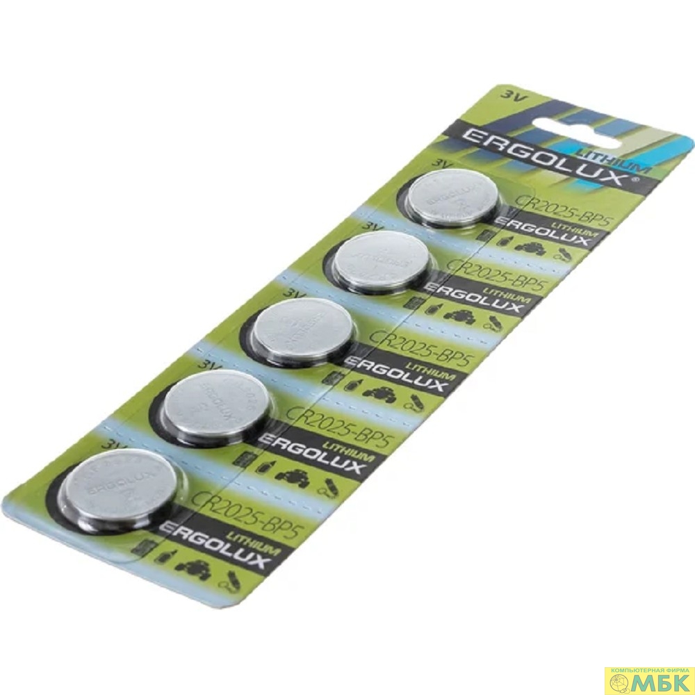 Ergolux.CR2025 BL-5 (CR2025-BP5, батарейка литиевая,3V) (5 шт. в уп-ке)