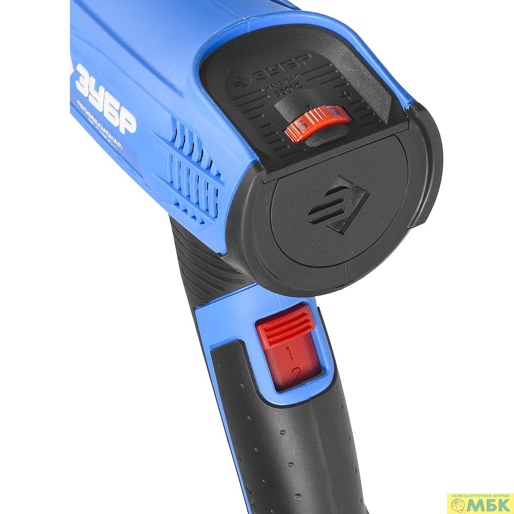 ЗУБР [ФТ-П1800] фен технический (строительный) { керам. изолятор, электр. регул. темп-ры, 2 режима: 80-550град, 350/550 л/мин, 1800Вт }