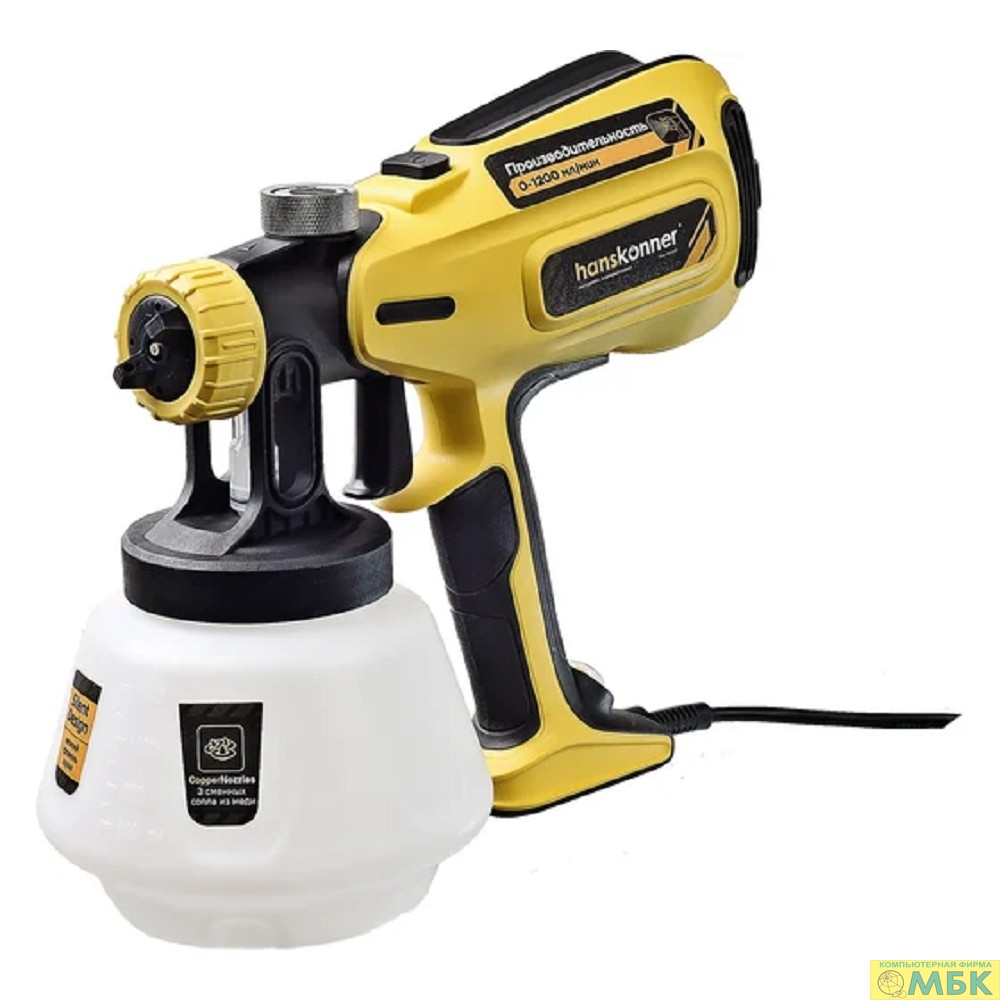 Краскопульт Hanskonner PLATINUM, 800Вт, 0-1200мл/мин, 120DIN/сек, МАЛОШУМНЫЙ, шнур 6м [HSG9680]