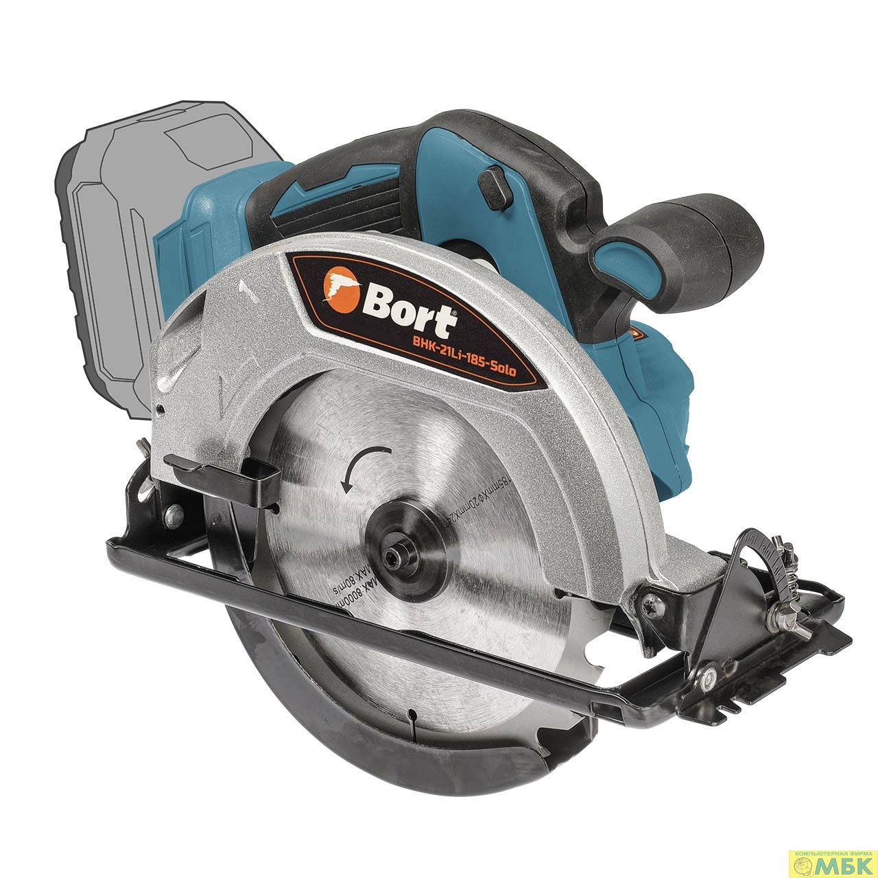 Bort BHK-21LI-185 SOLO ПИЛА ЦИРКУЛЯРНАЯ АККУМУЛЯТОРНАЯ [93418361] { БЕЗ АКБ И ЗУ, АКБ Makita 18V LXT, 0-3800 об/мин, диск 185 мм, 20 мм, 3 кг, аксессуаров 2 шт }