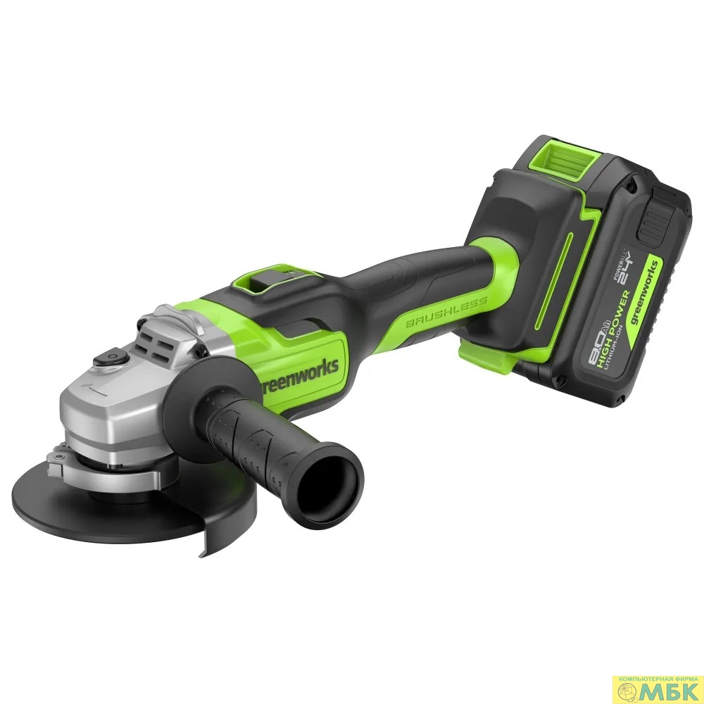 Greenworks GD24AG 24В Угловая шлифовальная машина акк, б/щет, 125 мм, 10500 об/мин,1х8Ач,ЗУ,кор [3200207CUH]
