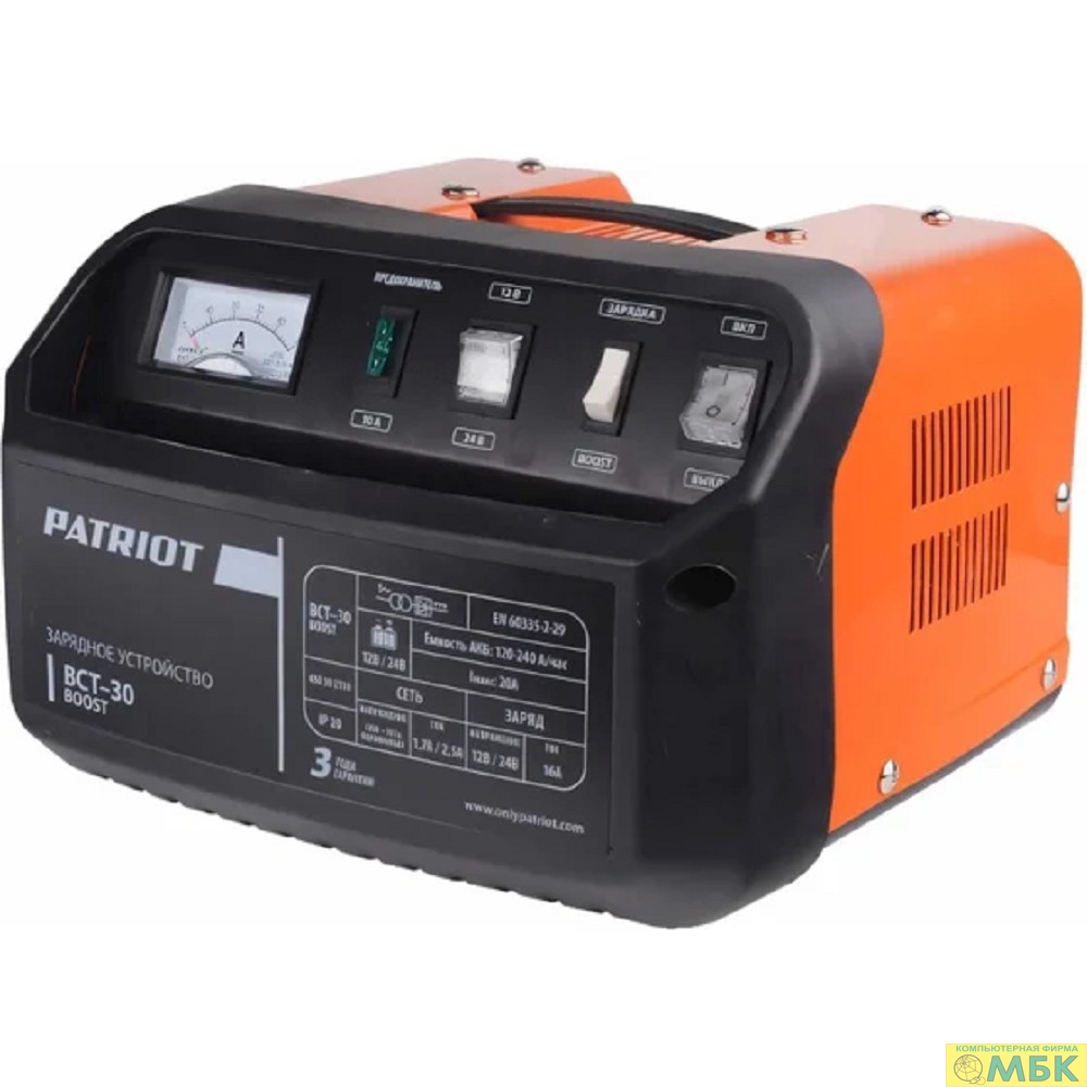 Заряднопредпусковое устройство PATRIOT BCT-30 Boost [650301530] {Вход.напр. 1ф - 220В ±15%, макс.мощн. 700Вт; напр.зарядки 12/24В, ток заряд/boost 16.0/20.0А; емк.бат. 120-240А/час, вес 9.1кг}