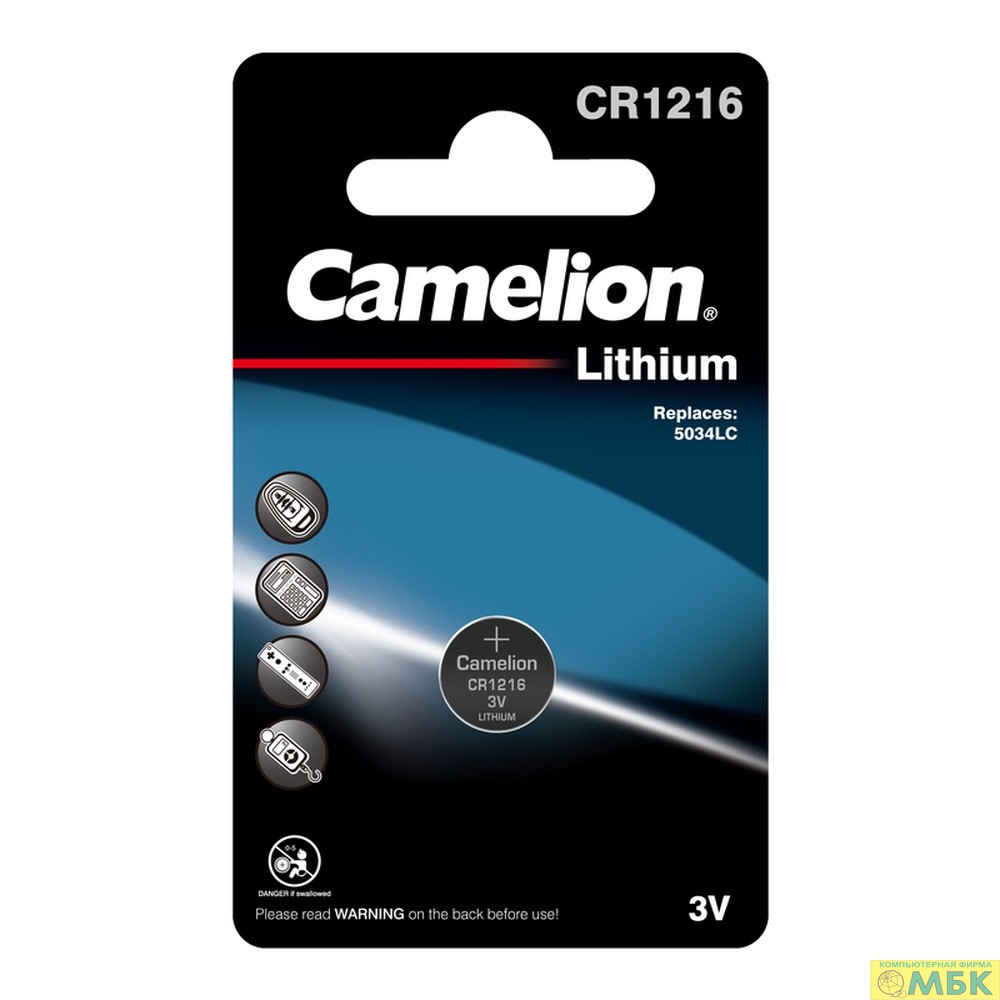 Camelion CR1216 BL-1 (CR1216-BP1, батарейка литиевая,3V)