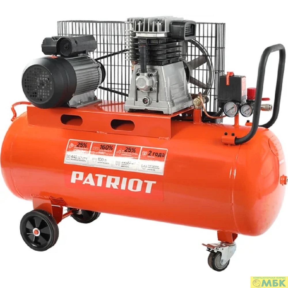 PATRIOT Expert Компрессор поршневой ременной [525301965] { PTR 100-440I, 440 л/мин, 10 бар, 2200 Вт, 100 л, быстросъемный 1/4" + "елочка" }