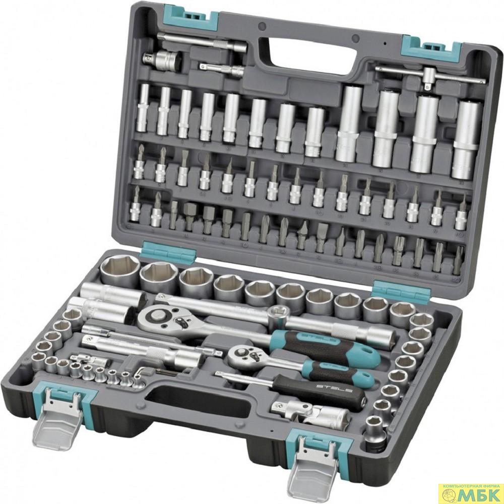 STELS Набор инструментов, 1/2", 1/4", CrV, пластиковый кейс 94 предм. [14106]