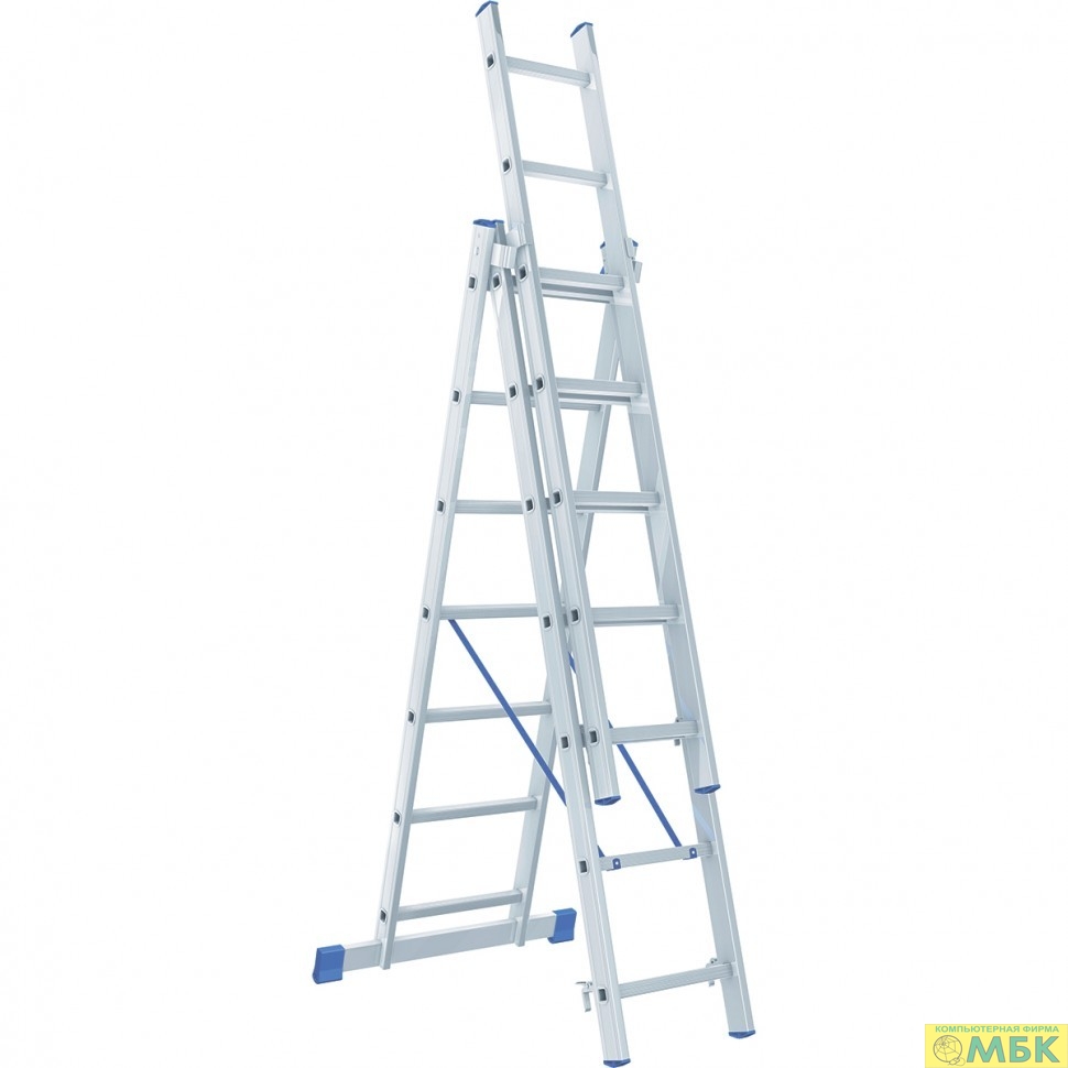 СИБРТЕХ Лестница, 3 х 7 ступеней, алюминиевая, трехсекционная, Россия [97817]