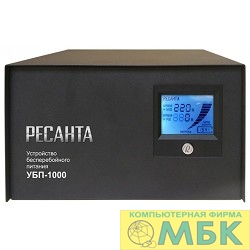 Ресанта УБП-1000 61/49/4 Устройство бесперебойного питания { 800 Вт напр. АКБ 24 В, макс.время работы 22ч, диапоз140-260Вт 210x90x240, 2,5 кг}