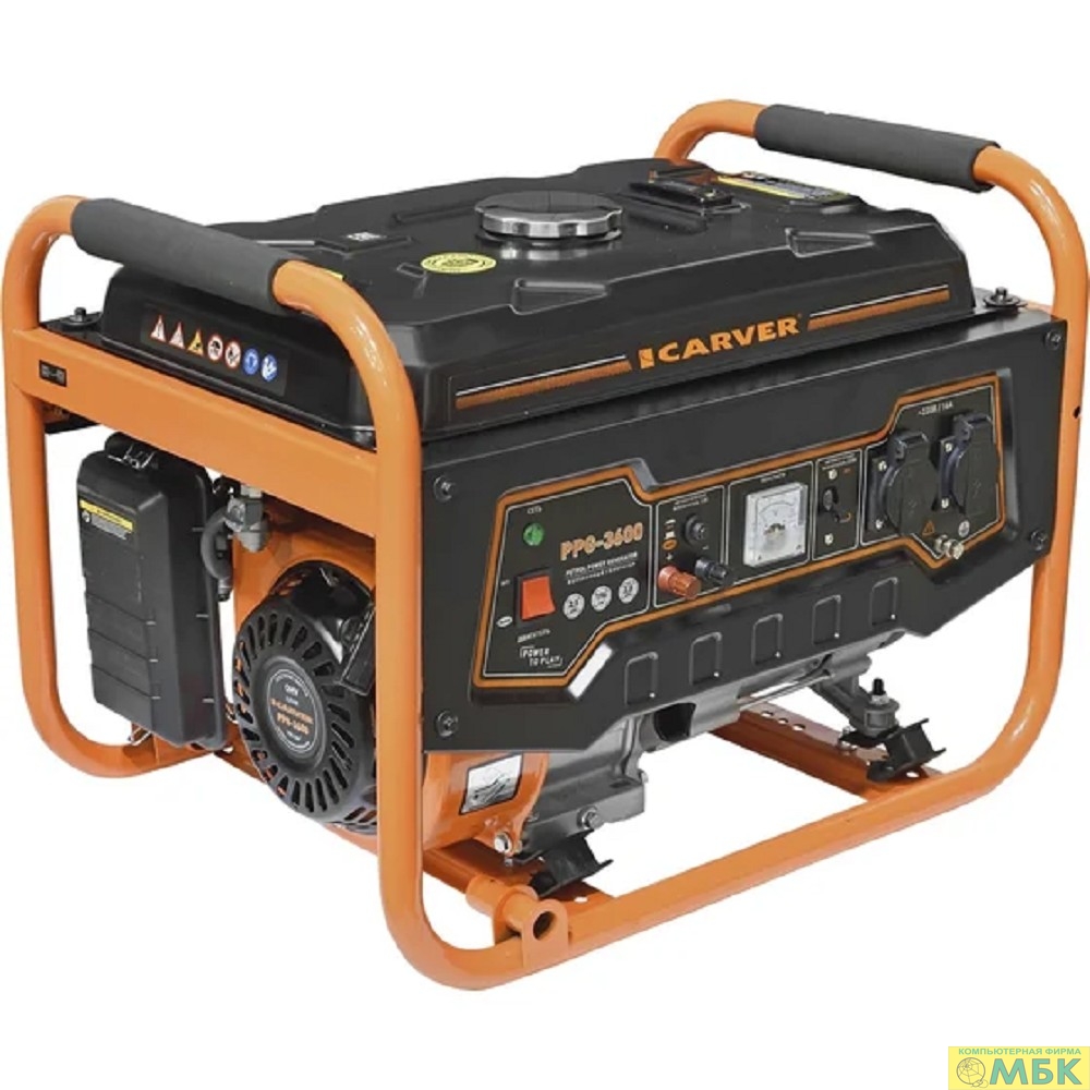 Генератор CARVER PPG- 3600А бензин [01.020.00011] { (LT-168F-1, 2,5/2,8кВт, 220В, бак15л)(16шт/пал) }