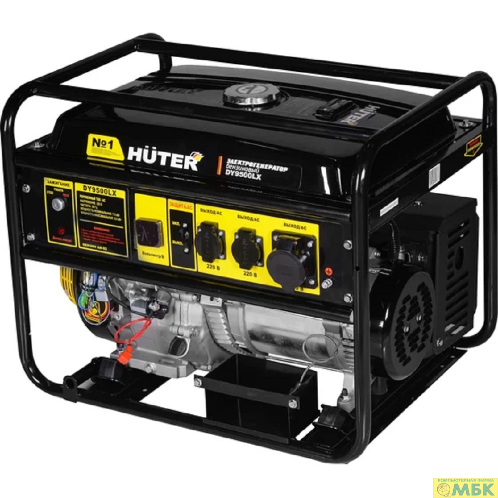 Huter DY9500LX 64/1/40 Электрогенератор { четырехтактный, 7500Вт, 220В/50Гц, 91Дб, принудительное охлаждение, бак 25 л, расход бензина 374 г/кВтч, расход масла 6,8 г/кВтч, электростартер }