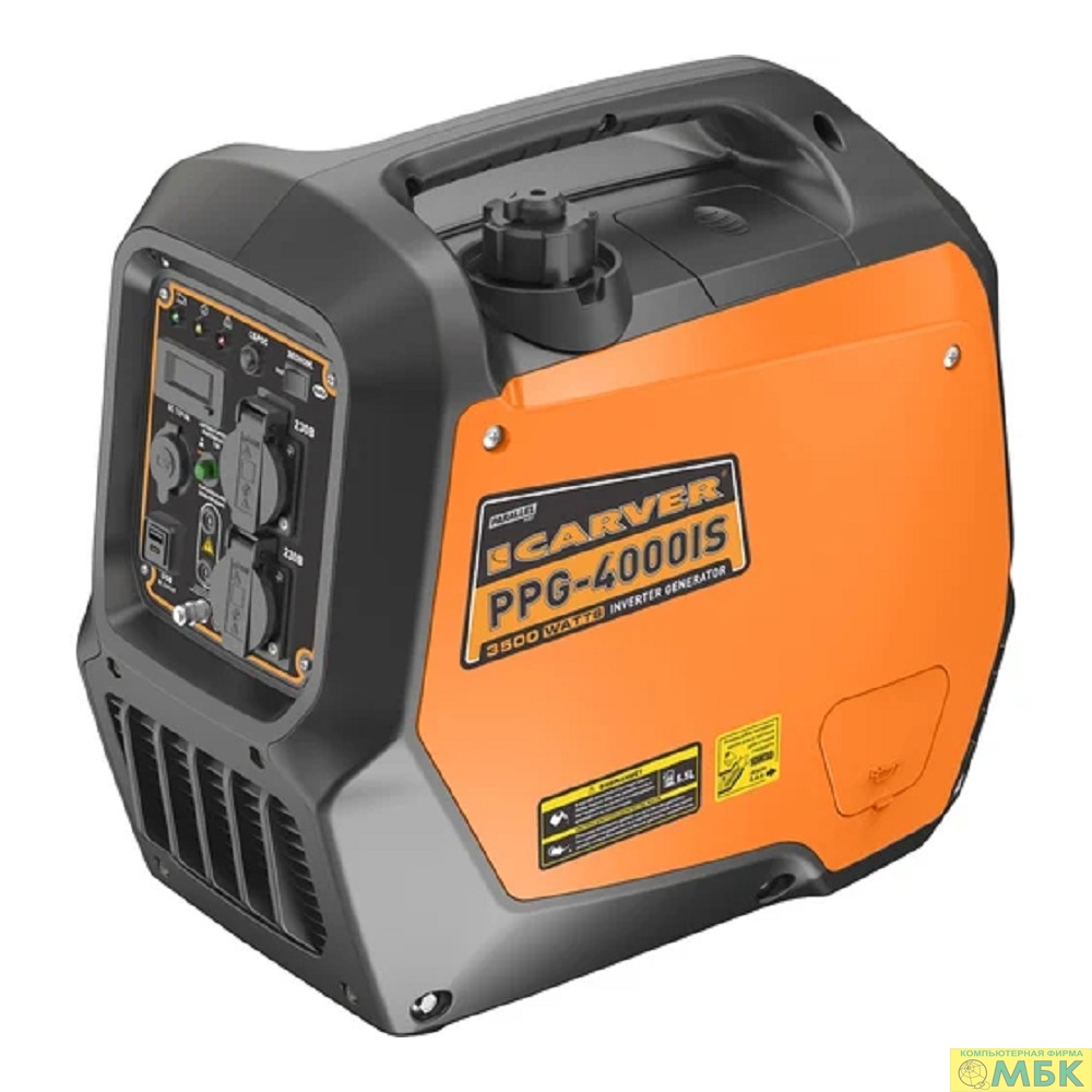 Генератор CARVER PPG -4000IS инверторный [01.020.00054] { (2,8/3 кВт, 220В, 2 розетки, USB, дисплей) (20шт/под) }