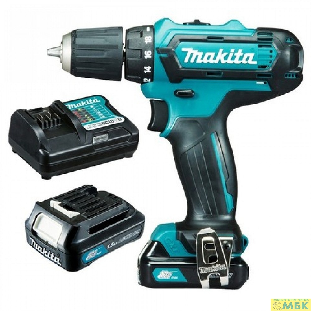 Makita DF333DWAE Дрель ак,{12В,2х2Ач Li-ion(слайдер),БЗП-10мм,0-450\1700об\м,30\14Нм,1.1кг,чем,подсв}