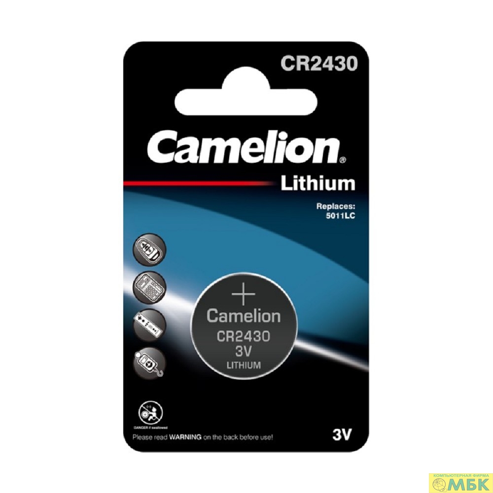 Camelion CR2430 BL-1 (CR2430-BP1, батарейка литиевая,3V) (1 шт. в уп-ке)