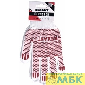 REXANT (09-0202-2) Перчатки х/б белые нейлоновые («Точка» ПВХ)