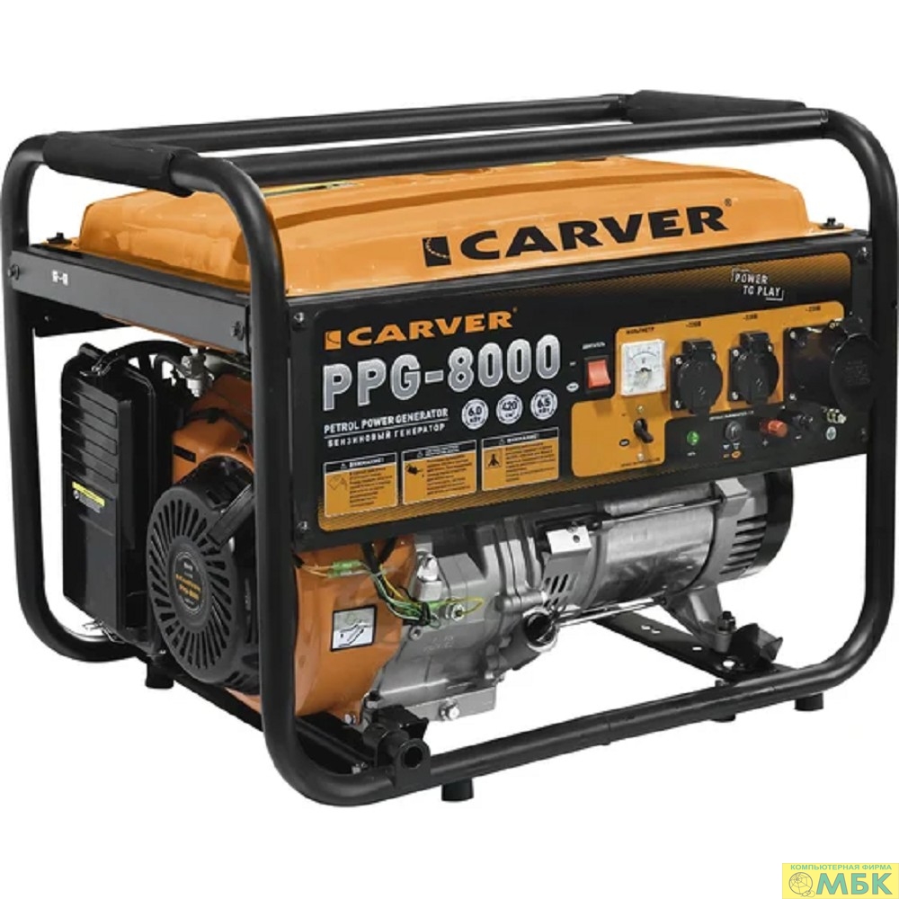 Генератор CARVER PPG- 8000 бензин [01.020.00020] { (LT-190F, 6,0/6,5кВт, 220В, бак 25л, обмотка медь)(6шт/пал) }